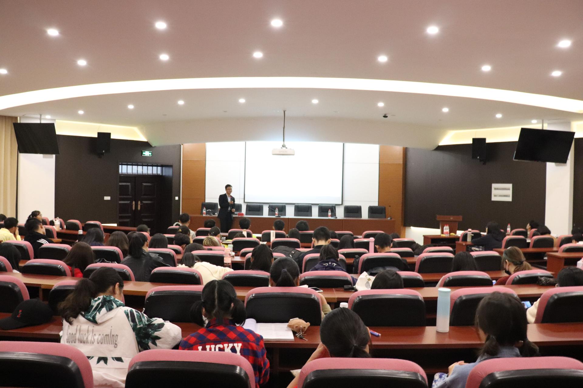 “我的故事”优秀校友创业经验分享会在7号楼112报告厅举行,邀请了04级广告专业学生、杭州链大科技有限公司CEO朱炜炜为在校生讲述他的创业经历。