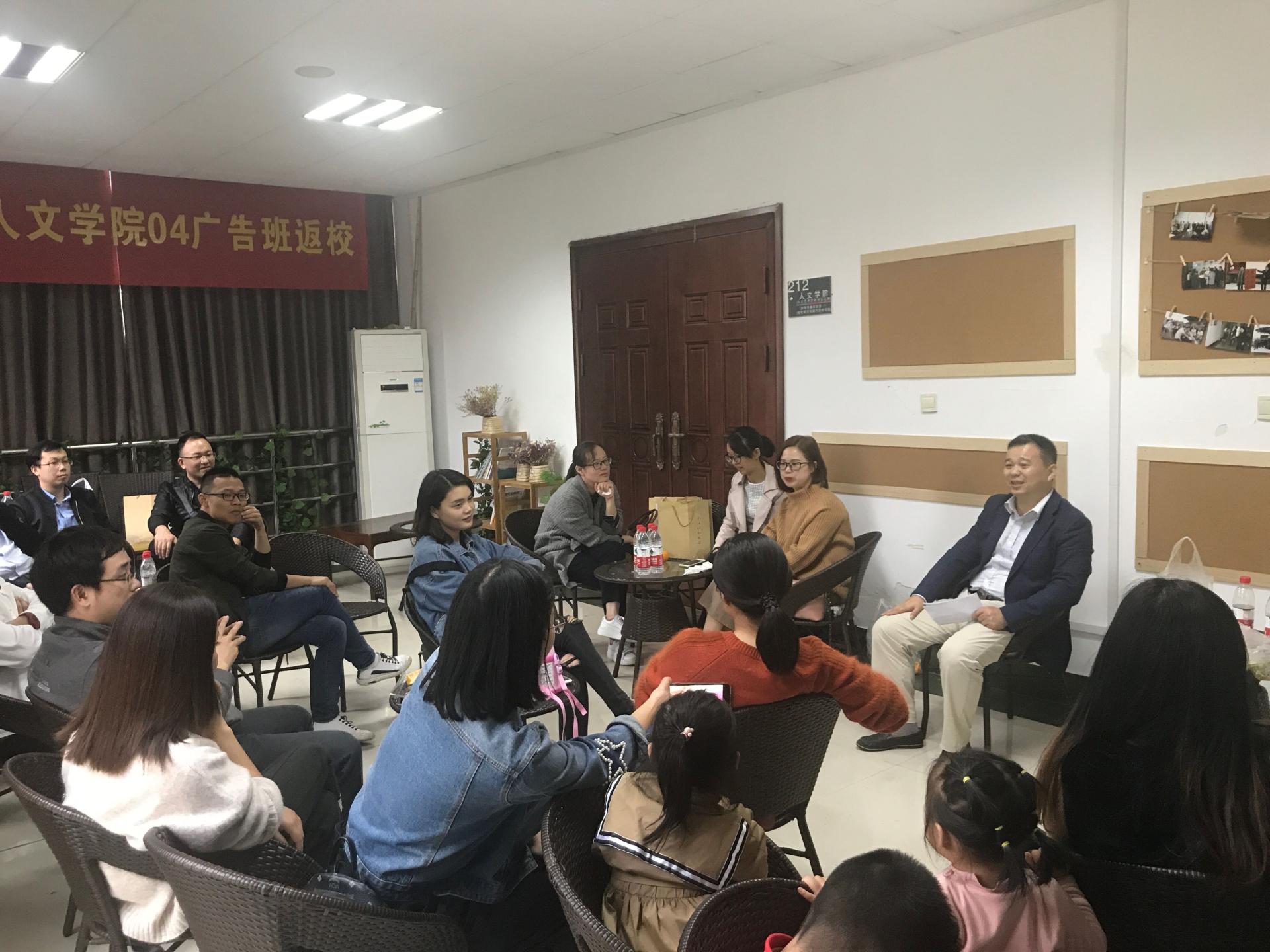 11月3日,正值学校2018年校友值年返校日。suncitygroup太阳成集团开展了“共叙师生情,共话同窗谊”毕业十周年师生座谈会和“我的故事”广告行业优秀校友创业经验分享会两个活动。学院校友分会秘书长、党委副书记吴玻,姜岳斌、吴智斌、崔霞、袁慧兰等教师和学院校友分会副秘书长、校友联络员章立峰及04广告、04文学、04东方广告1班、04级东方广告2班的校友和部分在校生参加。