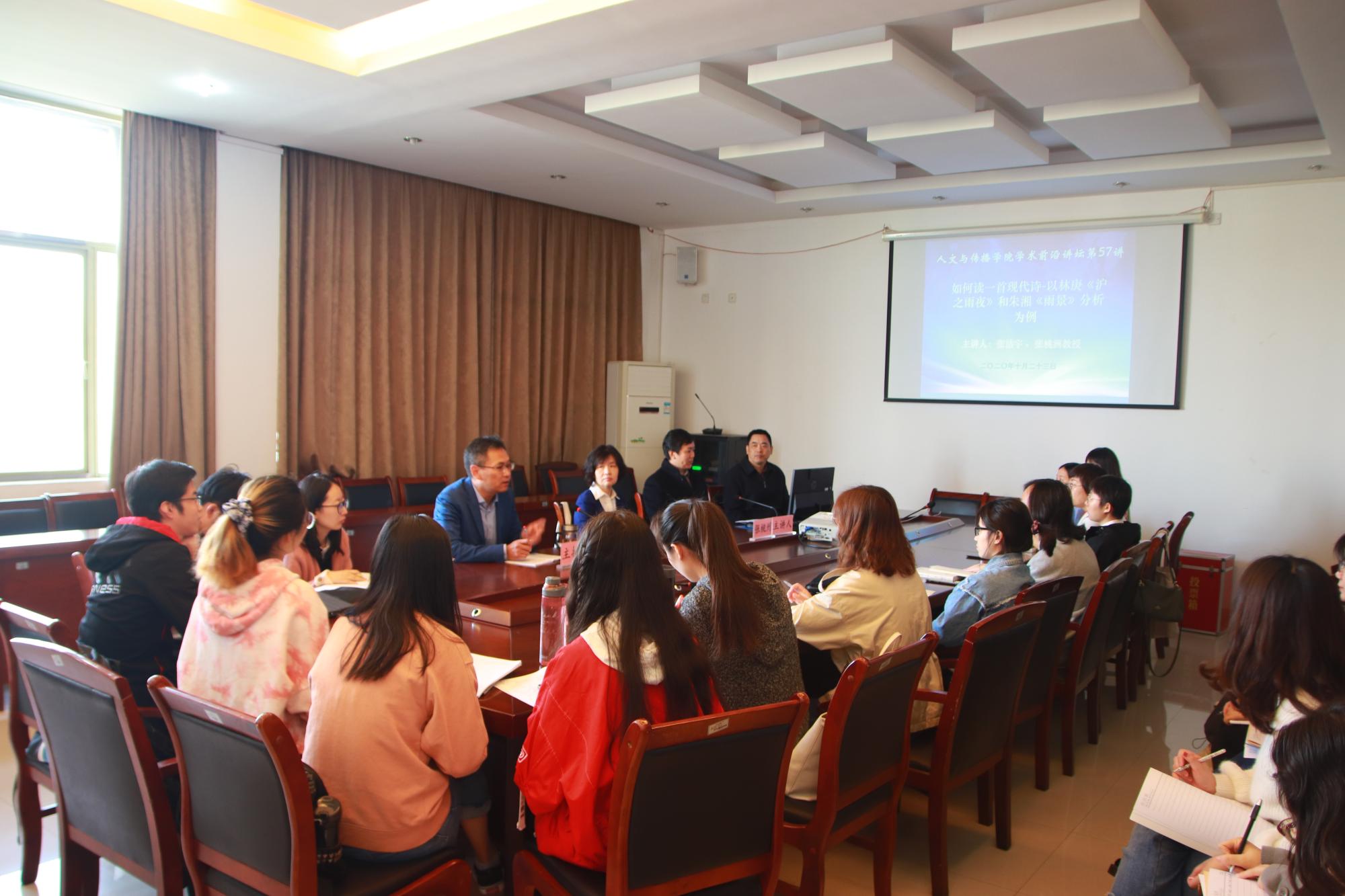2020年10月23日,首都师范大学教授、博士生导师、《首都师范大学学报》主编张桃洲和中国人民大学教授、博士生导师、人大复印资料《中国现当代文学》主编张洁宇应邀来太阳成讲学,为太阳成中国语言文学的硕士研究生做了题为“如何读一首现代诗——以朱湘《雨景》和林庚《沪之雨夜》分析为例。”本次讲座由太阳成周保欣教授主持。