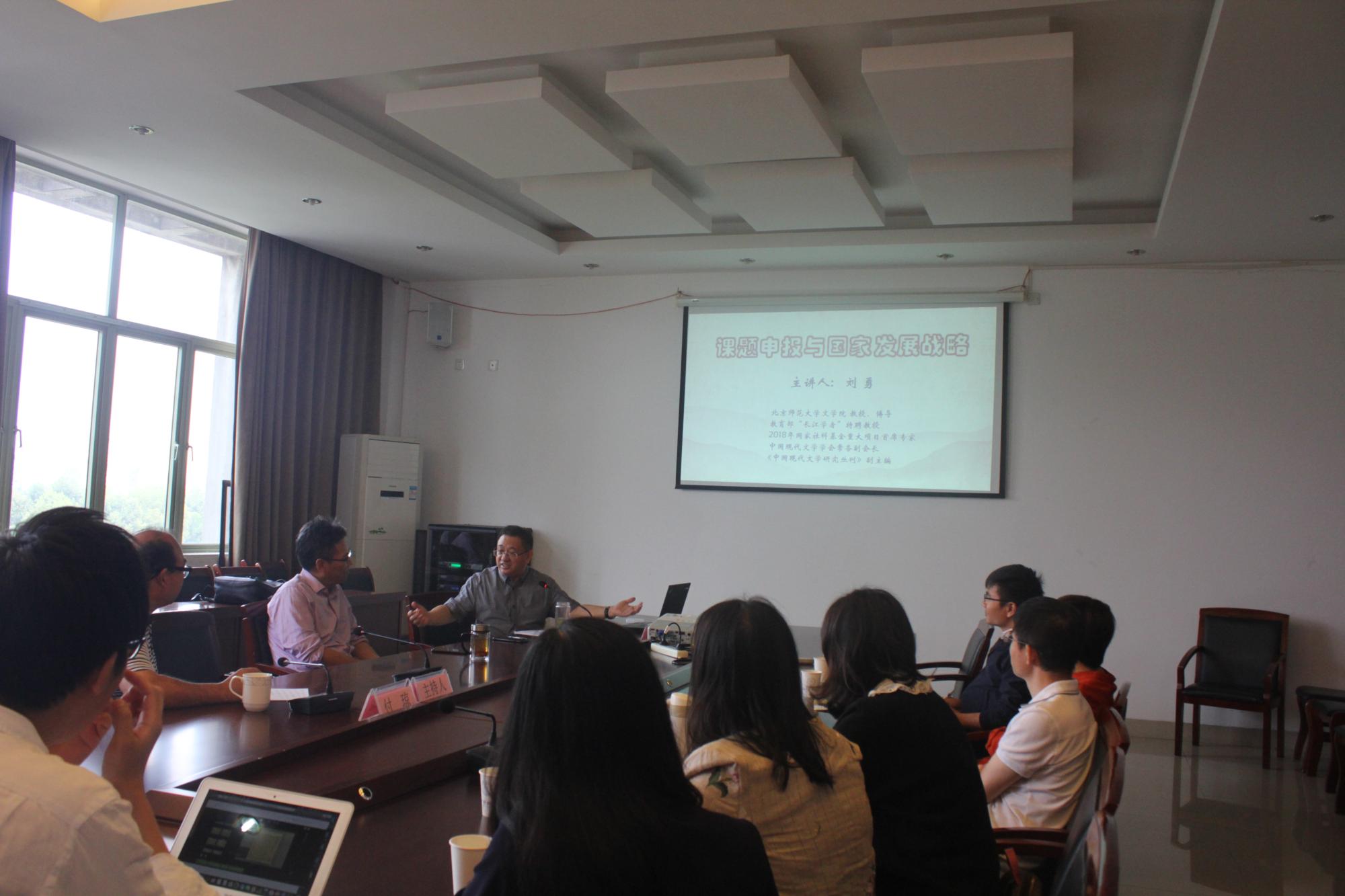 2019年10月12日上午,北京师范大学文学院刘勇教授莅临太阳成指导工作,在学院楼404室做了题为“研究生培养及其他”的讲座。
