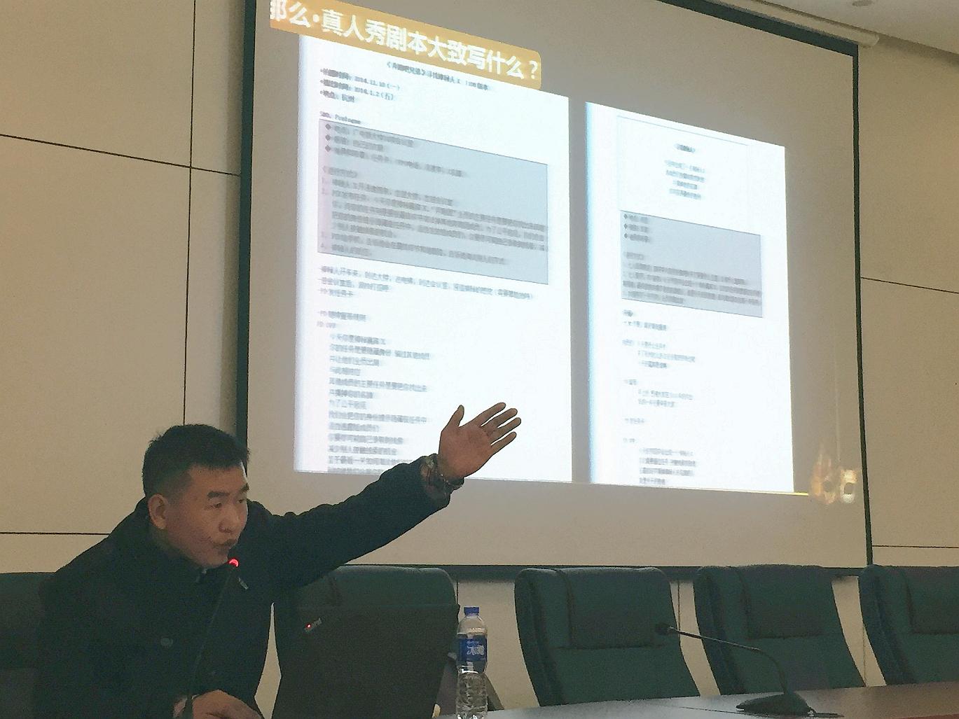 12月28日下午,浙江卫视首席编剧,浙江卫视《演员的诞生》、《奔跑吧兄弟》、《中国梦想秀》、《真星话大冒险》等王牌栏目的编剧、导演王艳锋来到suncitygroup太阳成集团112报告厅,以“挖坑者——综艺节目编剧的作用与基本技巧”为题,与现场同学进行了一场生动的学习交流。