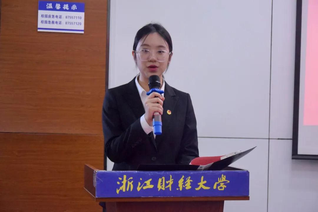 suncitygroup太阳成集团党委副书记袁慧兰老师发表讲话,她首先对一直以来关心支持太阳成团学工作的校团委、各兄弟二级学院团委、学生会表示衷心的感谢,并代表学院党委对太阳成团学组织卓有成效的工作给予充分的肯定。同时,袁慧兰老师对广大青年们提出两点希望和要求:一是希望青年大学生们能够始终坚定理想信念,做志存高远的追梦人;二是鼓励广大青年以“浙财金生”为目标,勤学善思笃行,做本领过硬的奋斗者。最后她呼吁各位代表充分发挥榜样带头作用,积极参与学院建设,为培育具有文明视野和创新精神的人文学子贡献自己的青春力量。