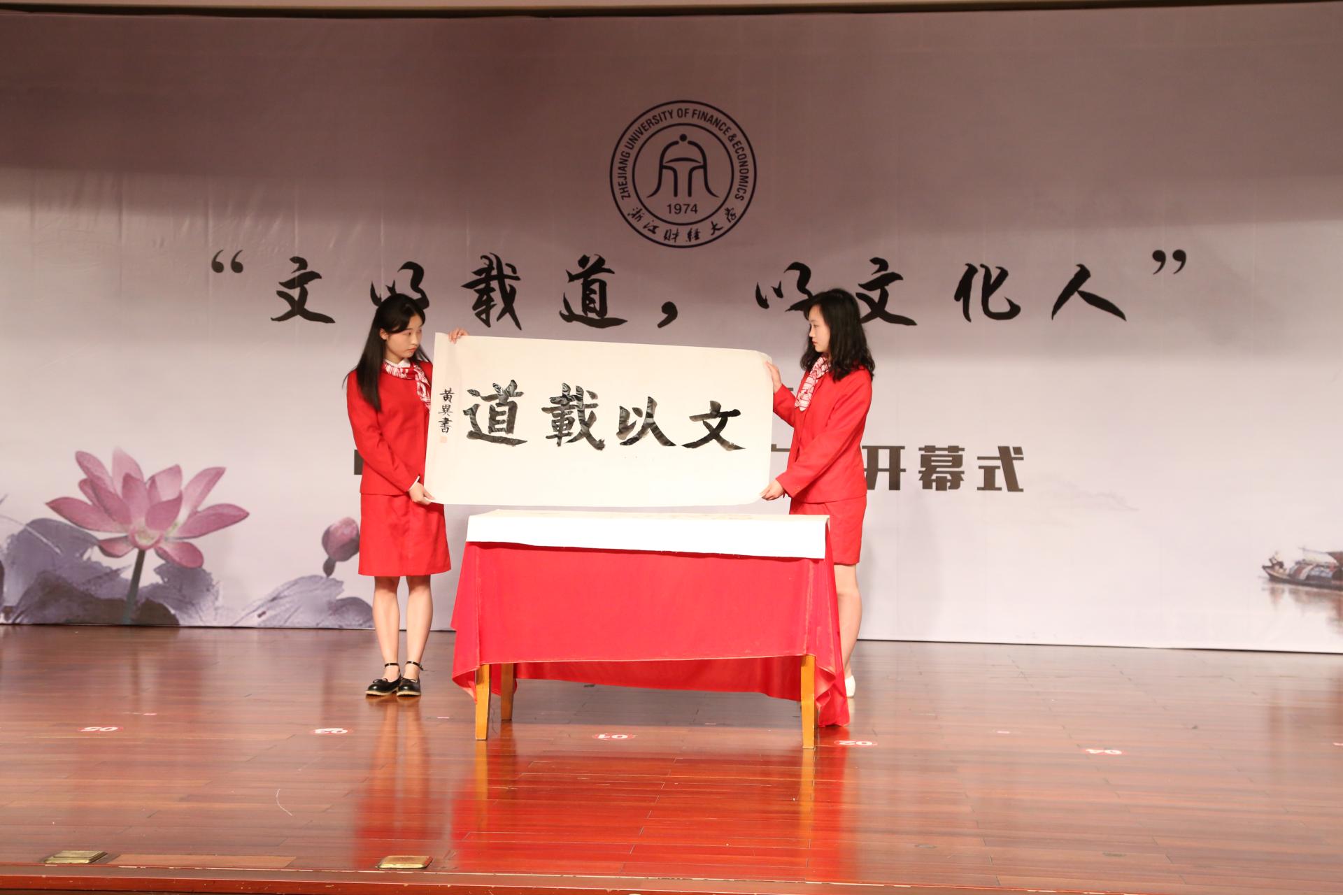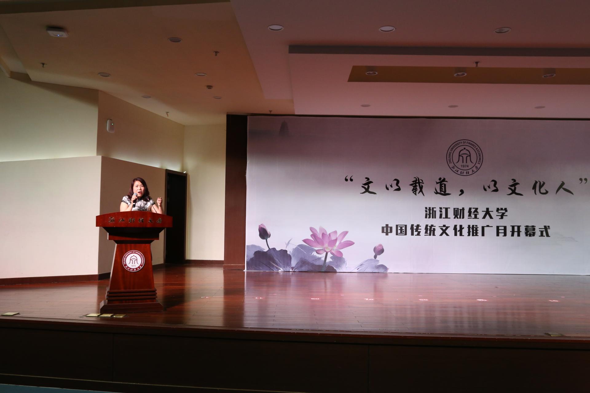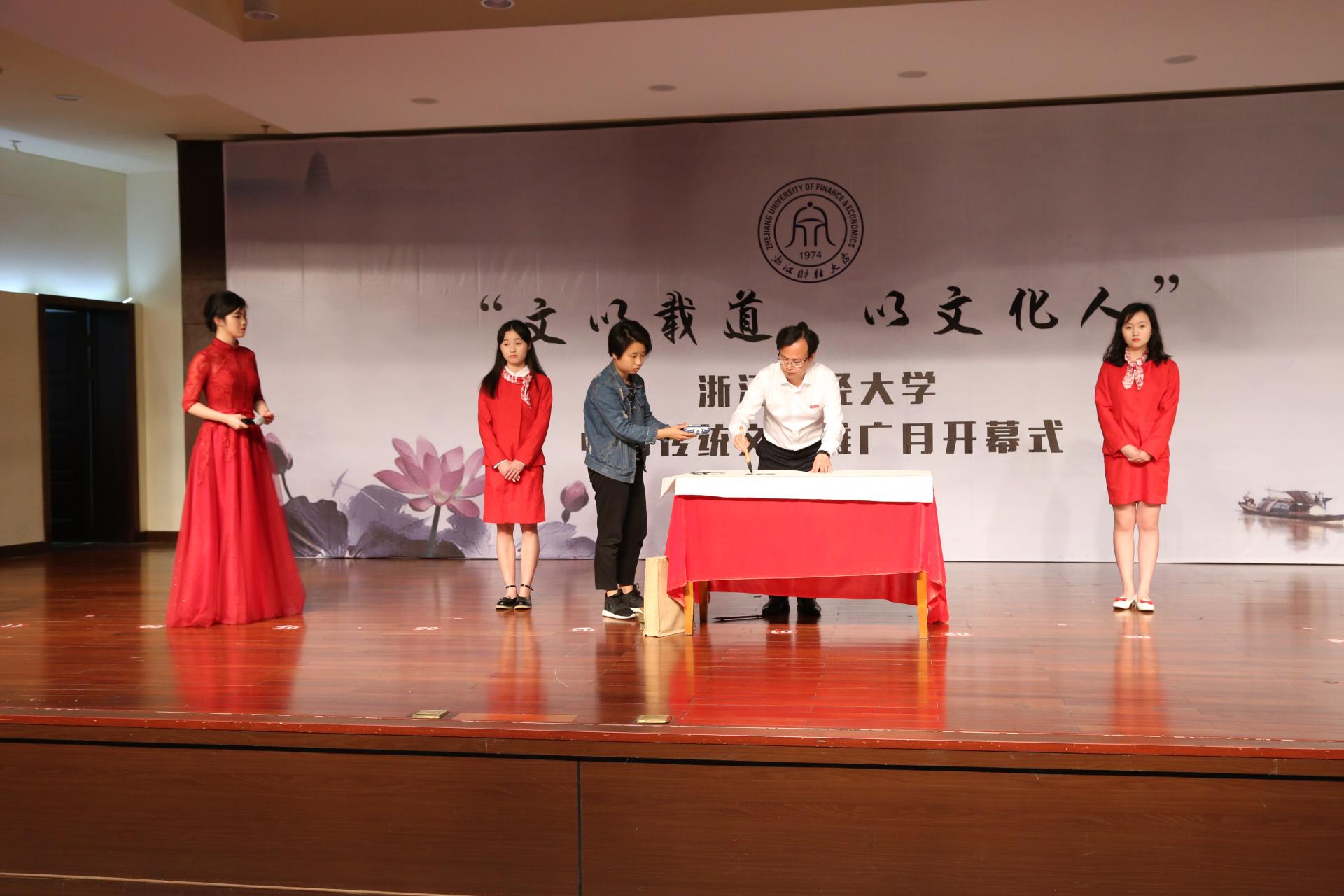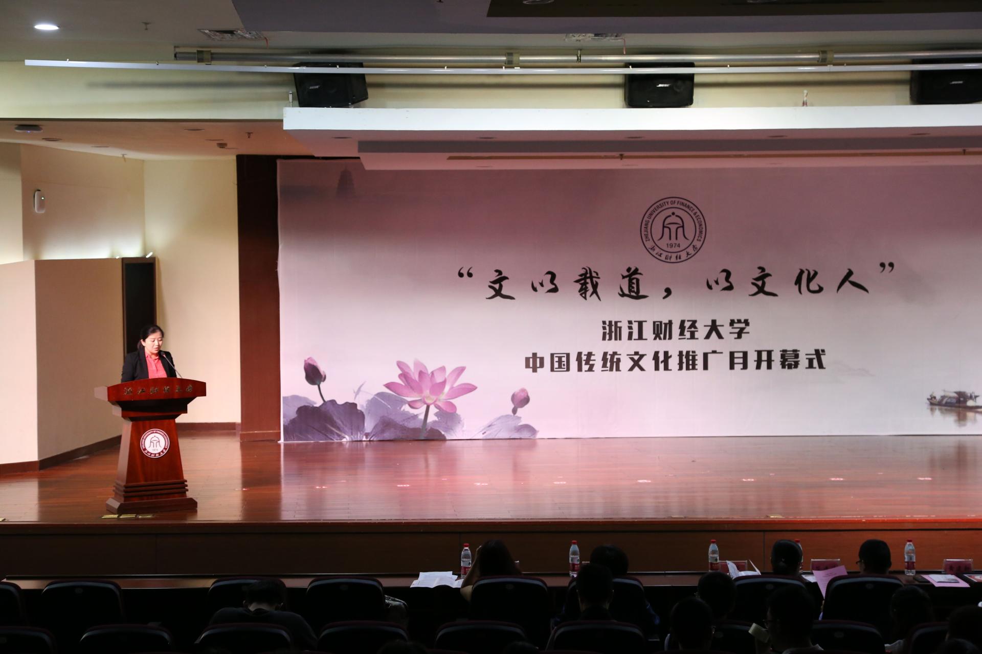 2017年4月20日下午1点30分,“文以载道,以文化人”浙江财经大学中国传统文化推广月开幕式在学术中心第一报告厅举行。党委委员、副校长黄建新出席本次开幕式。党委宣传部、学工部、团委、研工部、suncitygroup太阳成集团的领导以及各学院团委书记和500余名师生代表共同参加了本次开幕式。