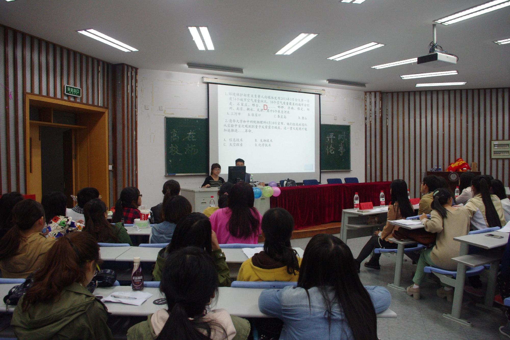 大赛由时事知多少,时事焦点争辩,时事新闻评论三个环节组成。13名参赛选手以抽取的号牌为顺序一一进行答题。第一轮时事知多少考验了选手们对时事的日常关注度。第二轮时事焦点争论上上演了一番唇枪舌剑。在2分钟的有限时间内,参赛选手充分表达了对焦点时事的理解与剖析,第三轮时事新闻评论则充分发挥了参赛选手们的主观能动性,对有关时事新闻进行了自由地论述,并以犀利的言辞回答了评委们的提问。最后,大赛评委对本次比赛做出了精辟点评,也表达了对本次大赛的充分肯定。