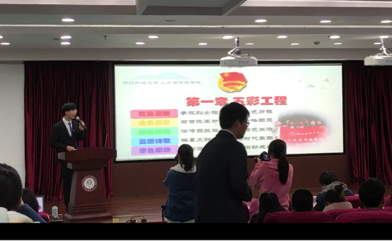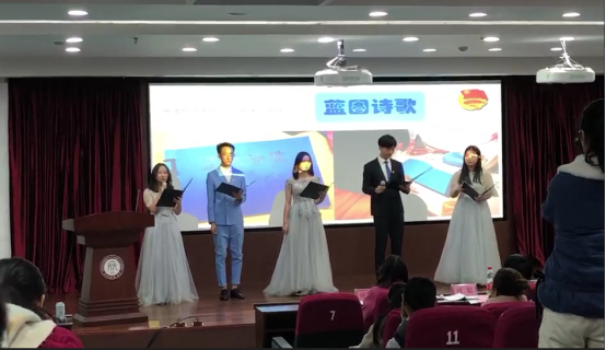 2018级文传(1)班班长兼团支部副书记郭继同学以《新时代、新青年的“五彩工程”》为主题,向在场评委和观众展示了班级团支部开展的“红色足迹”、“金色历史”、“绿色环境”、“蓝图诗歌”和“紫色团建”五大特色活动。六名同学现场朗诵了支部自己编写的歌颂红船精神的“蓝图诗歌”,充分展现suncitygroup太阳成集团的专业特色,展示了太阳成团员青年的精神风貌和团支部活力建设的优秀成果。