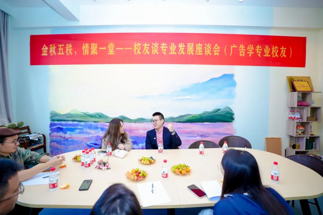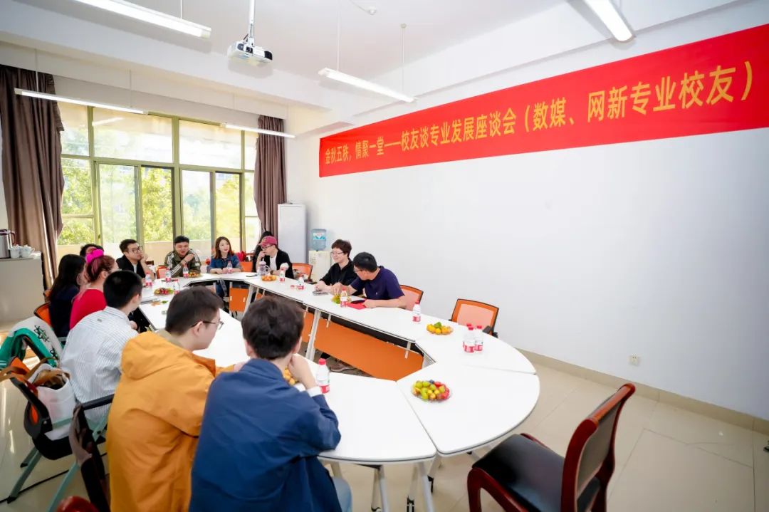 自建院以来,太阳成学子在各领域展现着卓越的才华。学院楼内举办了专业发展座谈会,特邀多位杰出校友与专业教师共聚一堂,探讨各专业的现状与未来。会议下设三个分会场,汉语言文学专业、广告学专业、数字媒体艺术与网络与新媒体专业,旨在深度交流与讨论。